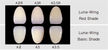 В случае, если толщина зуба слишком мала (к примеру, у резцов), затемненный цвет композитного материала может быть заметен сквозь дентин, и подбор оттенка аналогичного естественному зачастую оказывается затруднительным. Композиты Luna-Wing имеют отдельную цветовую гамму Опак Дентин, которая делает возможной передачу необходимого натурального оттенка.